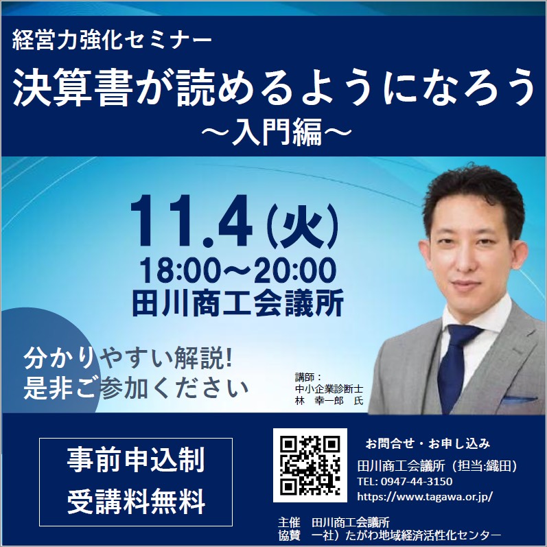 11/4(火)「決算書が読めるようになろう〜入門編〜」セミナー開催