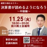 11/25(火)「決算書が読めるようになろう〜中級編〜」セミナー開催